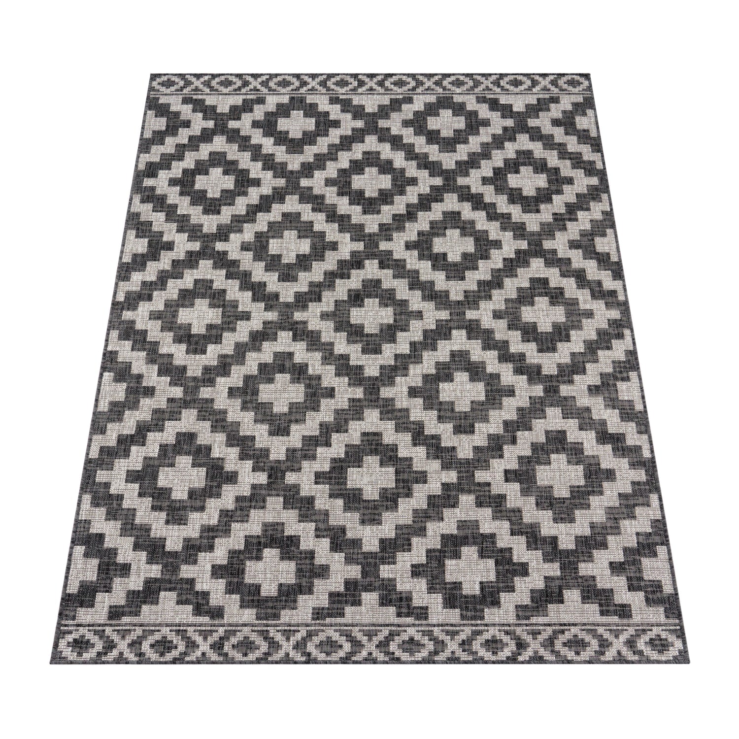 Ein behagliches Ambiente und eine gemütliche Stimmung sind nun nicht länger auf Ihr Lieblingszimmer und Ihre eigenen vier Wände beschränkt. Mit diesen angesagten Flachgewebe-Teppichen erhalten Sie echte Blickfänger, die Ihren Balkon oder Ihre Terrasse in eine wahre Wohlfühloase verwandeln. Durch ihr modernes Rautenmuster im skandinavischen oder ethnischen Stil bringen sie nicht nur eine optische Besonderheit in Ihren Außenbereich, sondern lassen sich aufgrund ihrer dezenten Farbvarianten in Grau, Weiß, Anthrazit, Beige oder Grün problemlos mit Ihrer vorhandenen Einrichtung kombinieren. Holen Sie sich jetzt das Wohngefühl Ihres Lieblingszimmers direkt nach draußen. Um sicherzustellen, dass Sie Ihr neues Wohnaccessoire ausgiebig genießen können und nicht bald wieder mit einem abgenutzten Fußabtreter dastehen, haben wir uns bei der Herstellung unserer Flachgewebe ausschließlich auf hochwertige Materialien verlassen. Das verwendete Material Polypropylen ist äußerst strapazierfähig und langlebig, sodass es den Anforderungen des Außenbereichs gerecht wird. Darüber hinaus wurde das besonders pflegeleichte Material nach dem unabhängigen STANDARD 100 by OEKO-TEX® geprüft und ist nachweislich frei von schädlichen Stoffen.